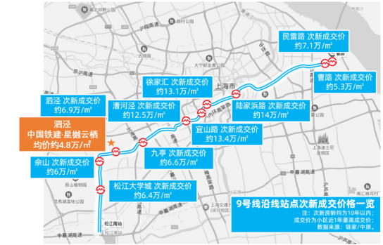 二手市场上,9号线周边次新价格呈明显梯度差,直线距离9号线泗泾站约700米,已然与同板块二手房形成近2万+/㎡的价差,用更低的价格,享受同样的配套!