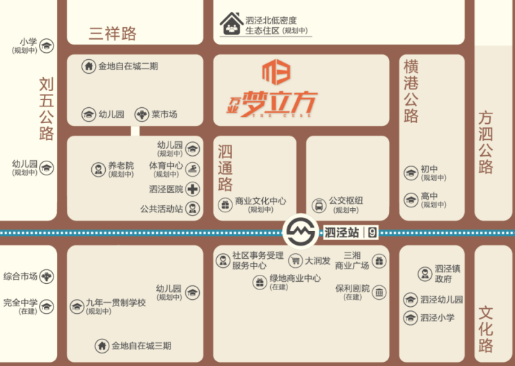 距9号线泗泾站直线距离约700-900米,步行约10分钟可达