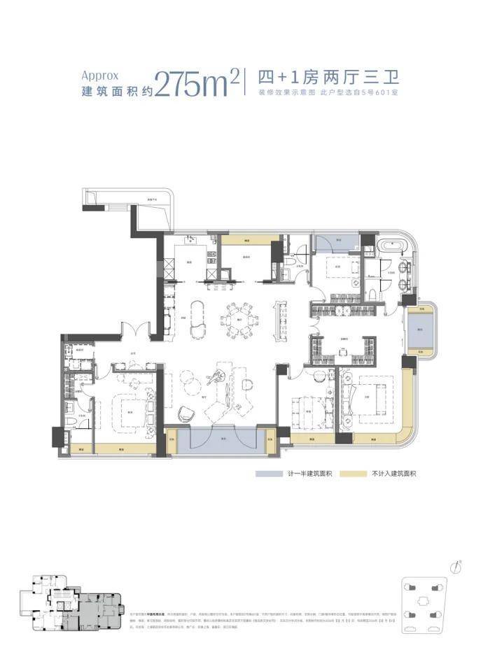 建面约275㎡4+1 房户型,以约22 米南向极致面宽,实现了超越市面 400㎡级大平层的采光尺度,约 80㎡奢阔餐客通厅搭配 7.2 米客厅开间,形成无界通透的社交聚场,既容得下三餐四季的烟火日常,也撑得起家族宴请的排场体面。
