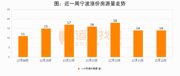 根据诸葛找房数据显示,宁波24小时涨价房源量为14套,较12月14日持平。