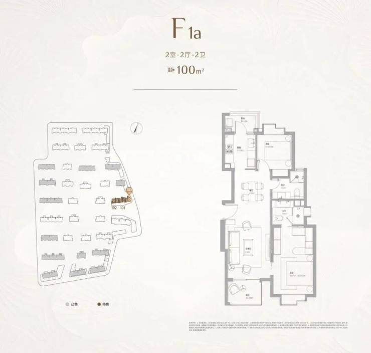 100㎡两房两厅两卫:刚需入门,总价可控,板块唯一千万级两房产品