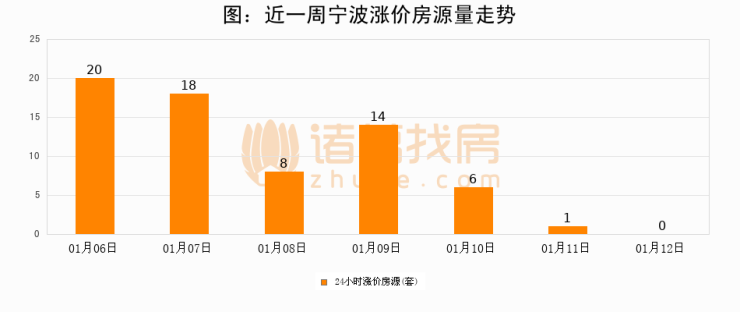 根据诸葛找房数据显示,宁波24小时涨价房源量为0套,较01月11日减少1套,环比下降100%。与此同时,涨价房源占比小幅回落,对于购房者来说是一个入市窗口期,购房者可抓住时机入市。