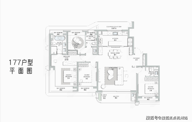 177㎡艺术贵雅奢邸是海上·清和玺压轴力作,延续玺系经典的设计理念和思路,阔朗的四面大开间设计,客厅做到了大横厅设计,延续了曲面流体的阳台,并赠送了独具特色的阳台迷你花园。