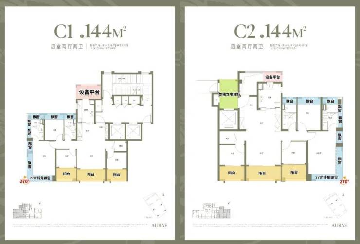 2、约144㎡4房,市区景观更好、实得率更高的改善户型