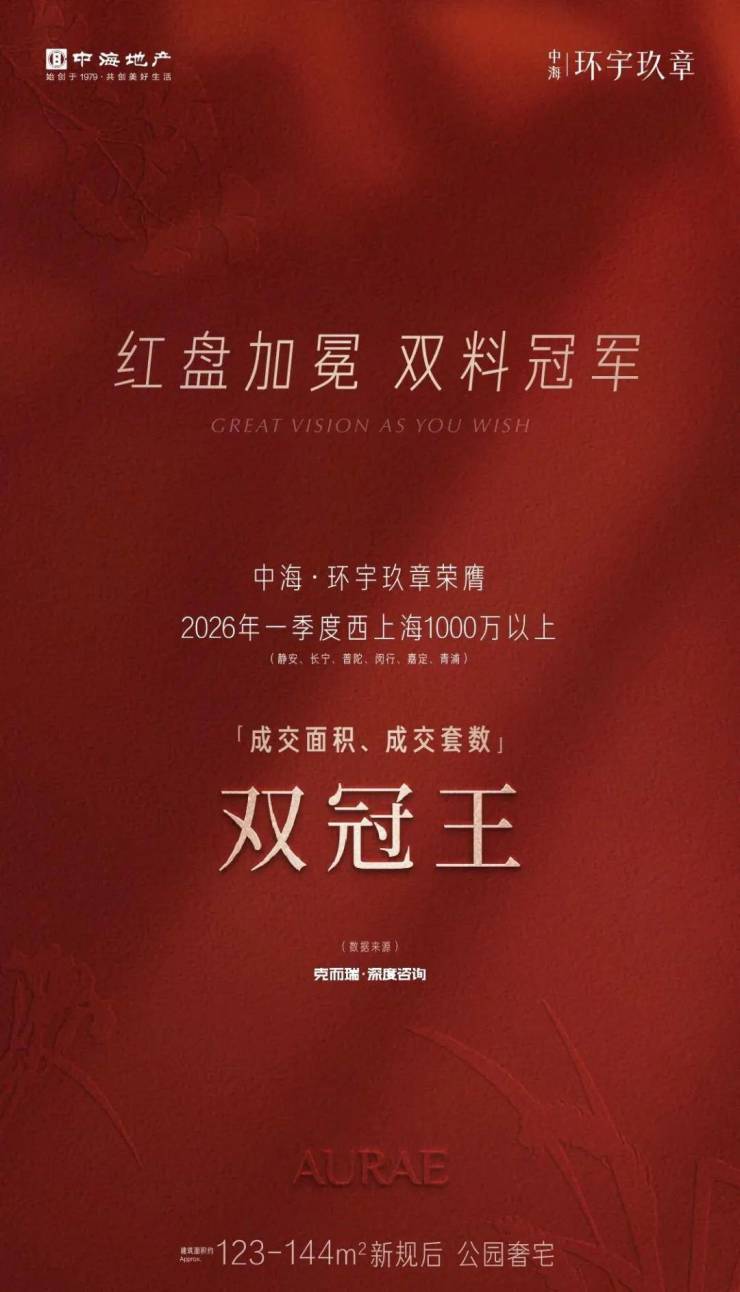 而真如副中心的中海环宇玖章一批次爆火,二批次持续热销中,刚刚荣膺2026年一季度西上海1000万以上成交面积、成交套数双冠王。