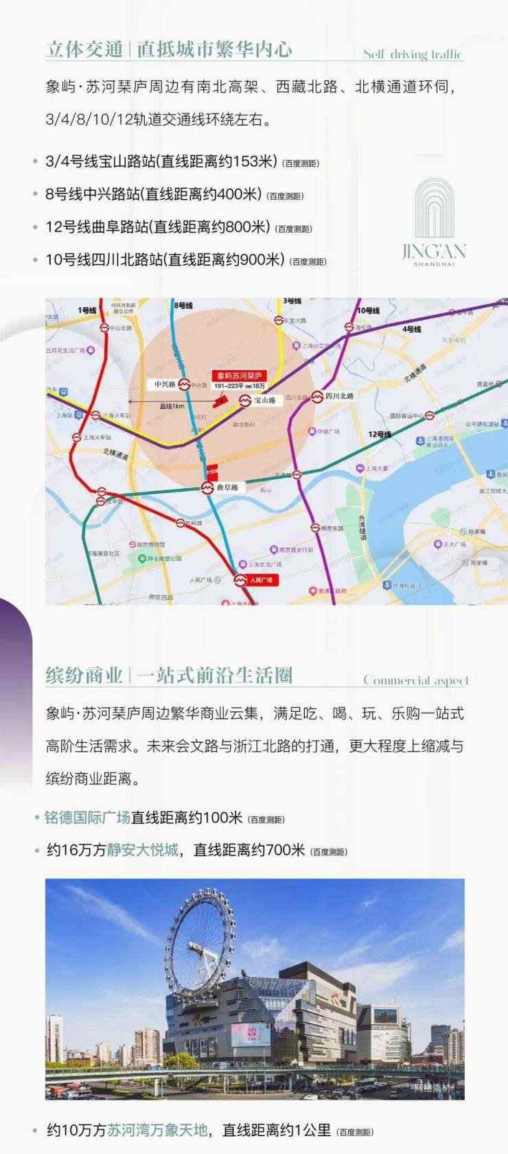 步行可达:静安大悦城(约 750 米)、苏河湾万象天地(约 500 米)