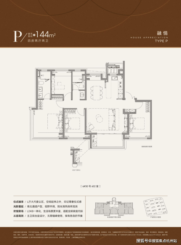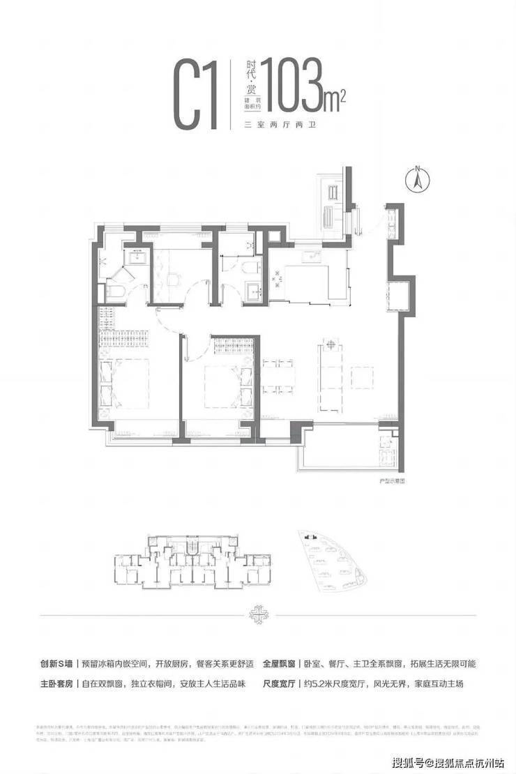 在建面约110㎡户型已有的两点之上再度升级,简约面144㎡户型更加匹配三代同堂、二胎之家。