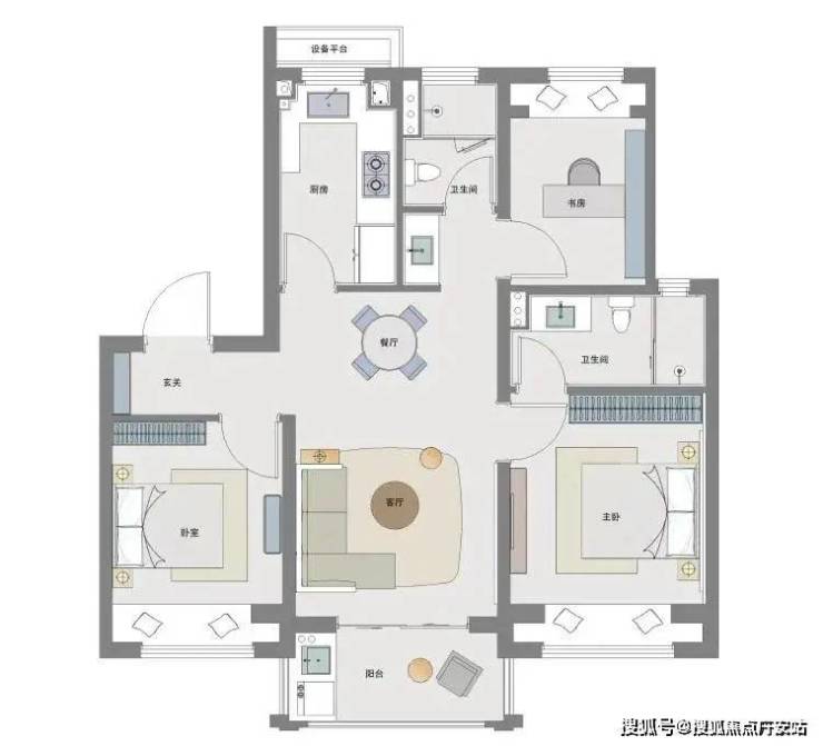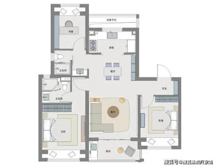 1、建面约92㎡做到3房2厅2卫,控制总价的同时将功能性做到了更大化