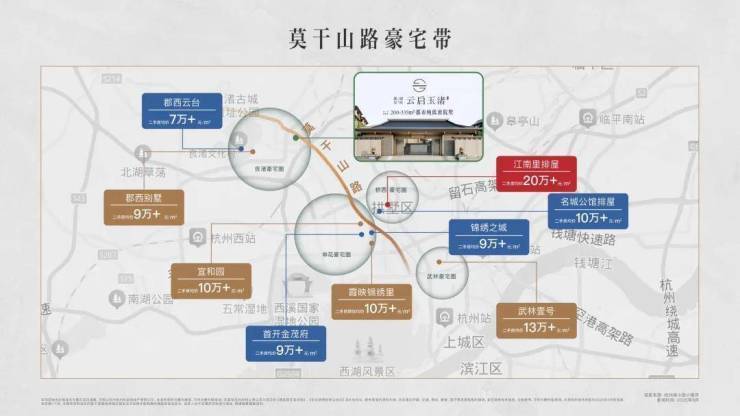 云启玉渚坐落于“莫干山路”这条贯穿杭州南北的千年中轴之上,莫干山路串联起了良渚、申花、武林等商圈, 使项目既享主城繁华便利,又接壤良渚文化村的自然与文化静谧。