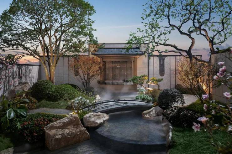 另外下沉式庭院的设计笔者很是喜欢,有飞云玉瀑、卧波平桥、老桩紫薇、百年朴树……漫步其中,能明显感受到 到处洋溢着豪宅的尊贵气息。