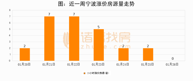 根据诸葛找房数据显示,宁波24小时涨价房源量为0套,较01月25日减少2套,环比下降100%。与此同时,涨价房源占比小幅回落,对于购房者来说是一个入市窗口期,购房者可抓住时机入市。