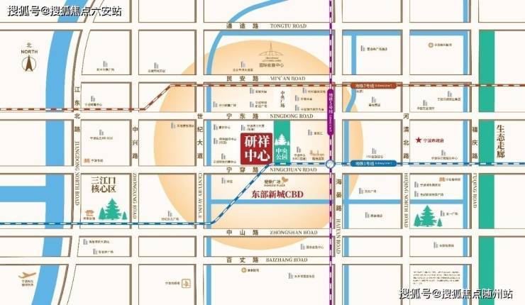 地理位置优越:研祥中心位于宁波东部新城CBD核心位置,无缝对接地铁1/5号线,步行距离仅280米,且可通过地下通道直接连通,极大提升了出行效率。同时,周边城市主干道宁穿路四通八达,自驾出行也十分便捷。