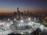 继工体完成主体混凝土结构封顶后,12月24日,工体外压环开始吊装。按计划工体将在明年3月以前完成罩棚的安装,明年12月全面完工。